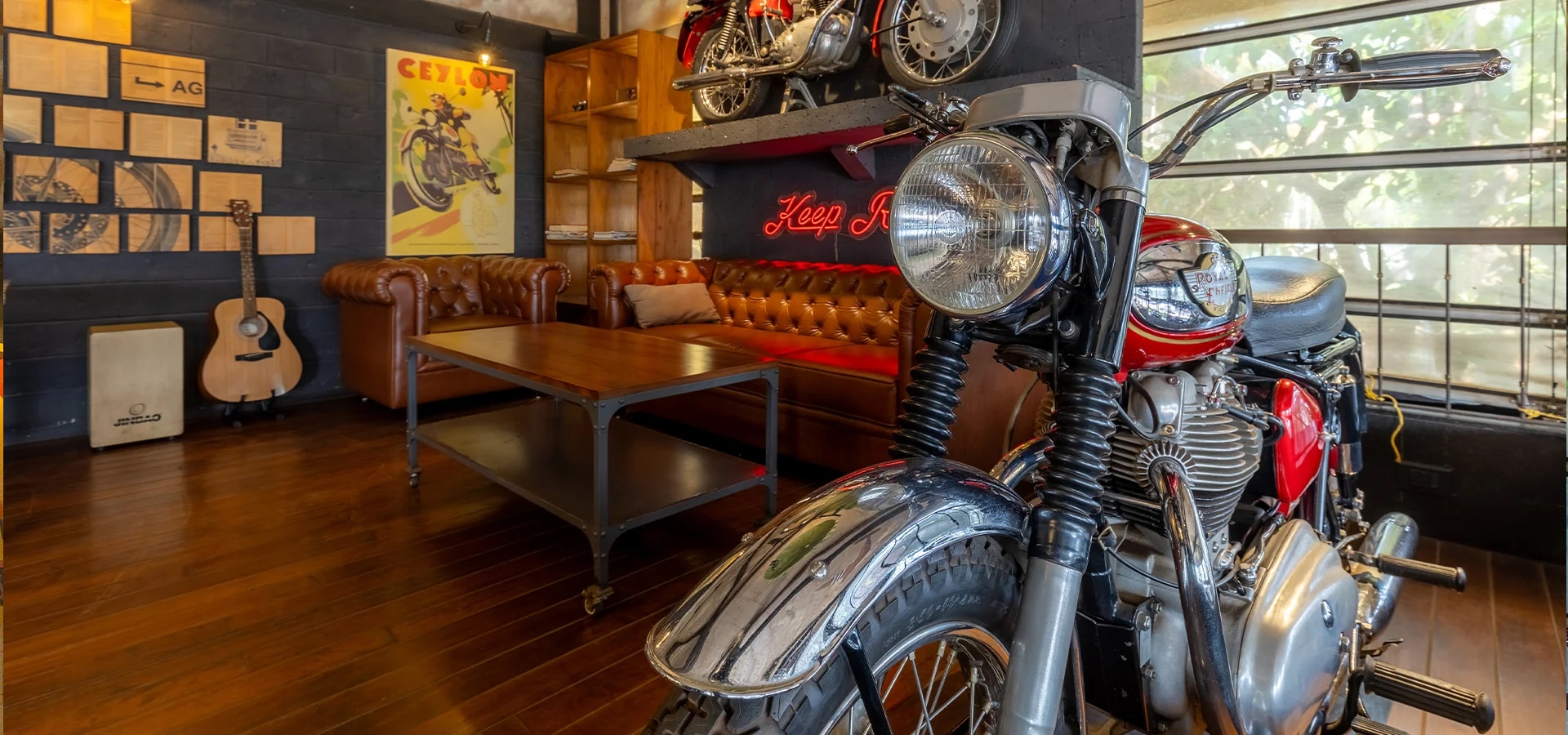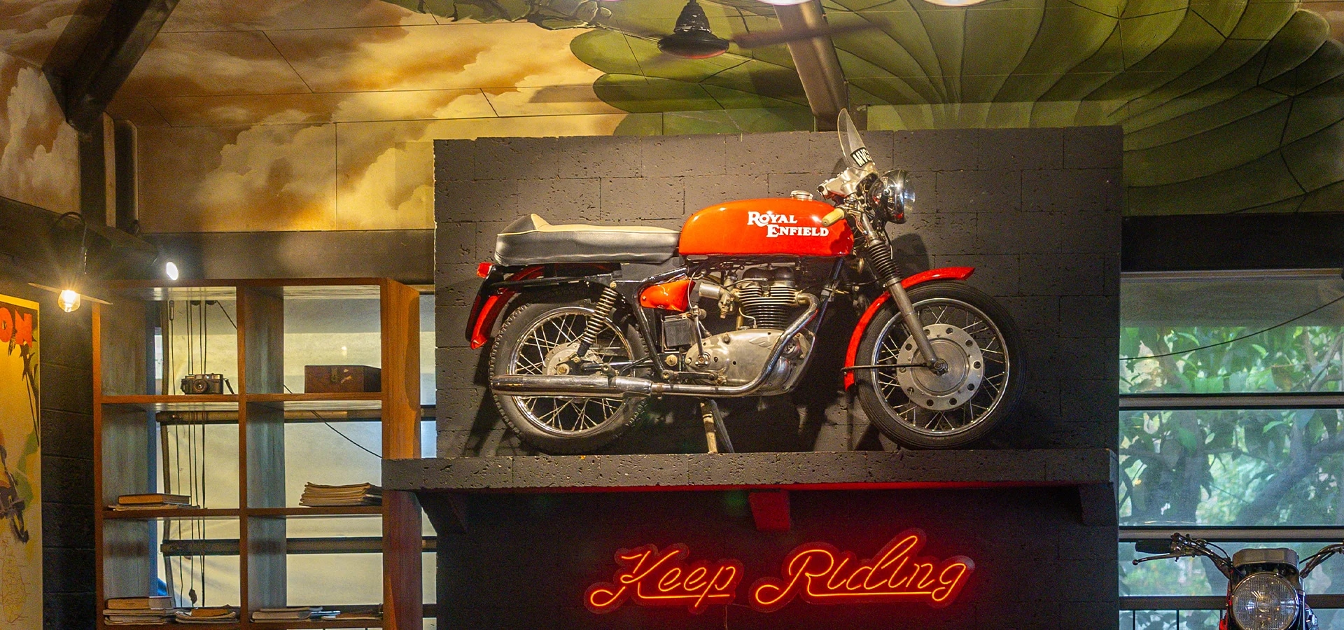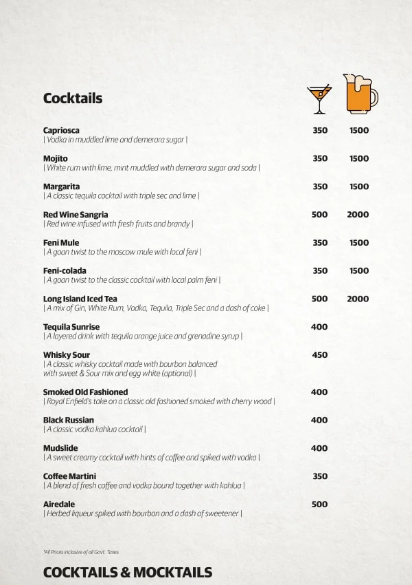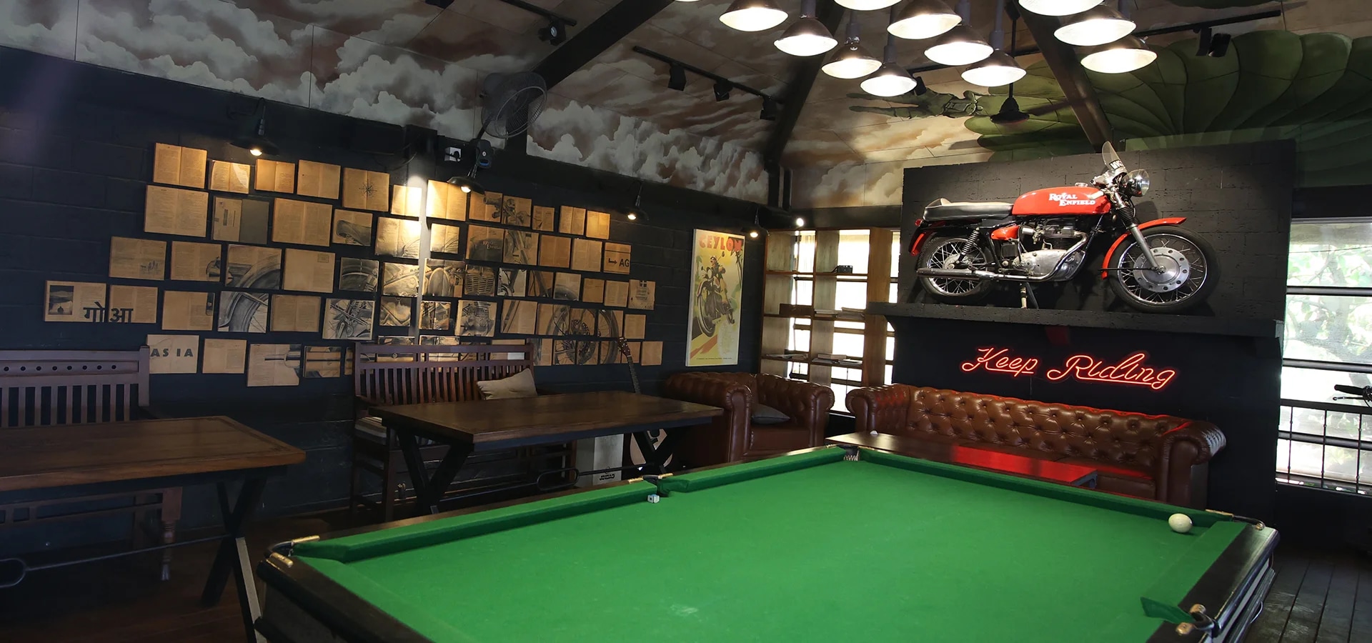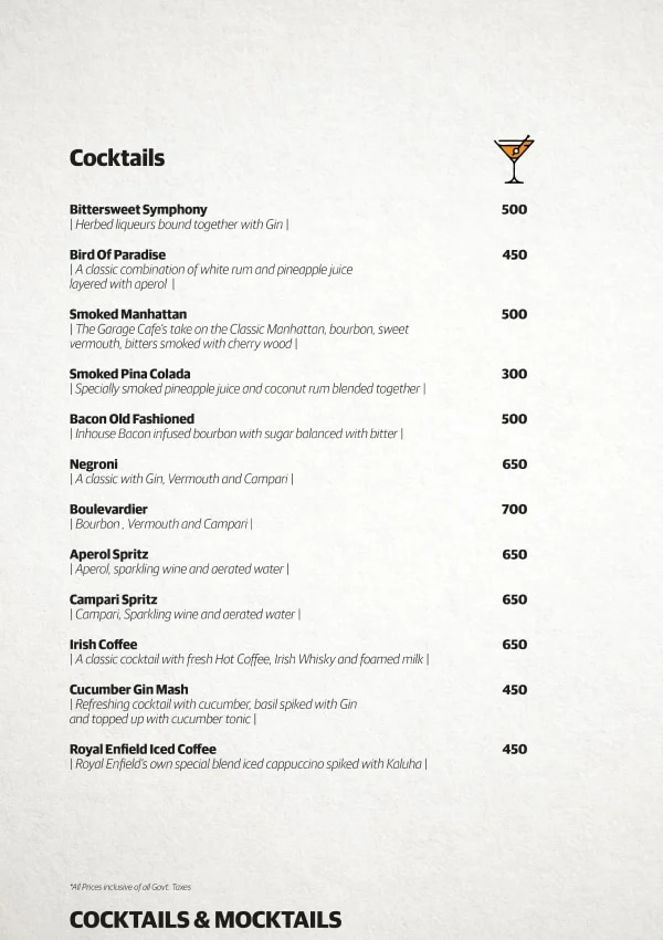 Garage Café, Goa is motorcycling inspired café and bar by Royal Enfield. It is home to Royal Enfield’s vintage motorcycles, art by motorcyclists, signature dishes curated by speciality chefs. Here you find 120 years of motorcycling legacy seamlessly integrating with Goan heritage.