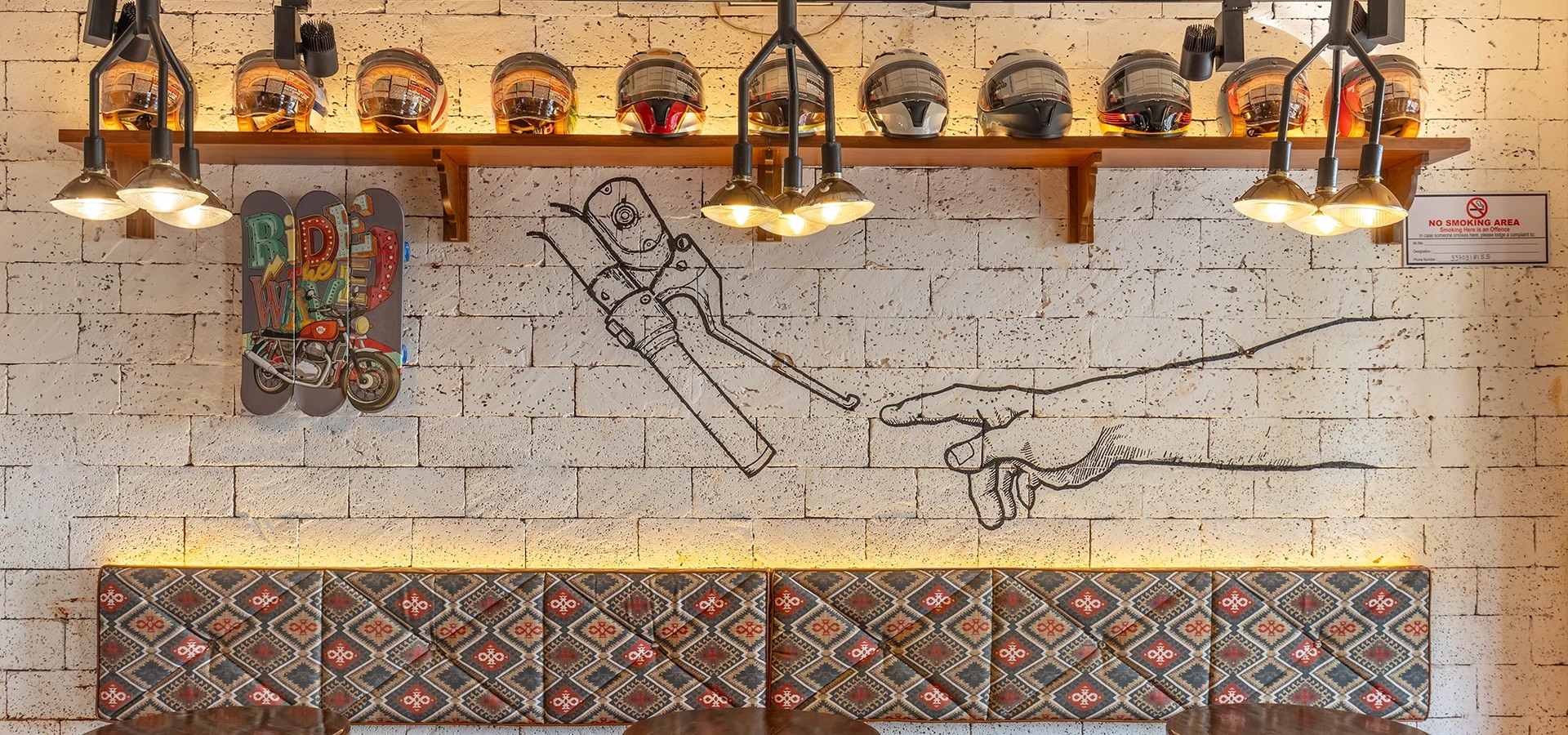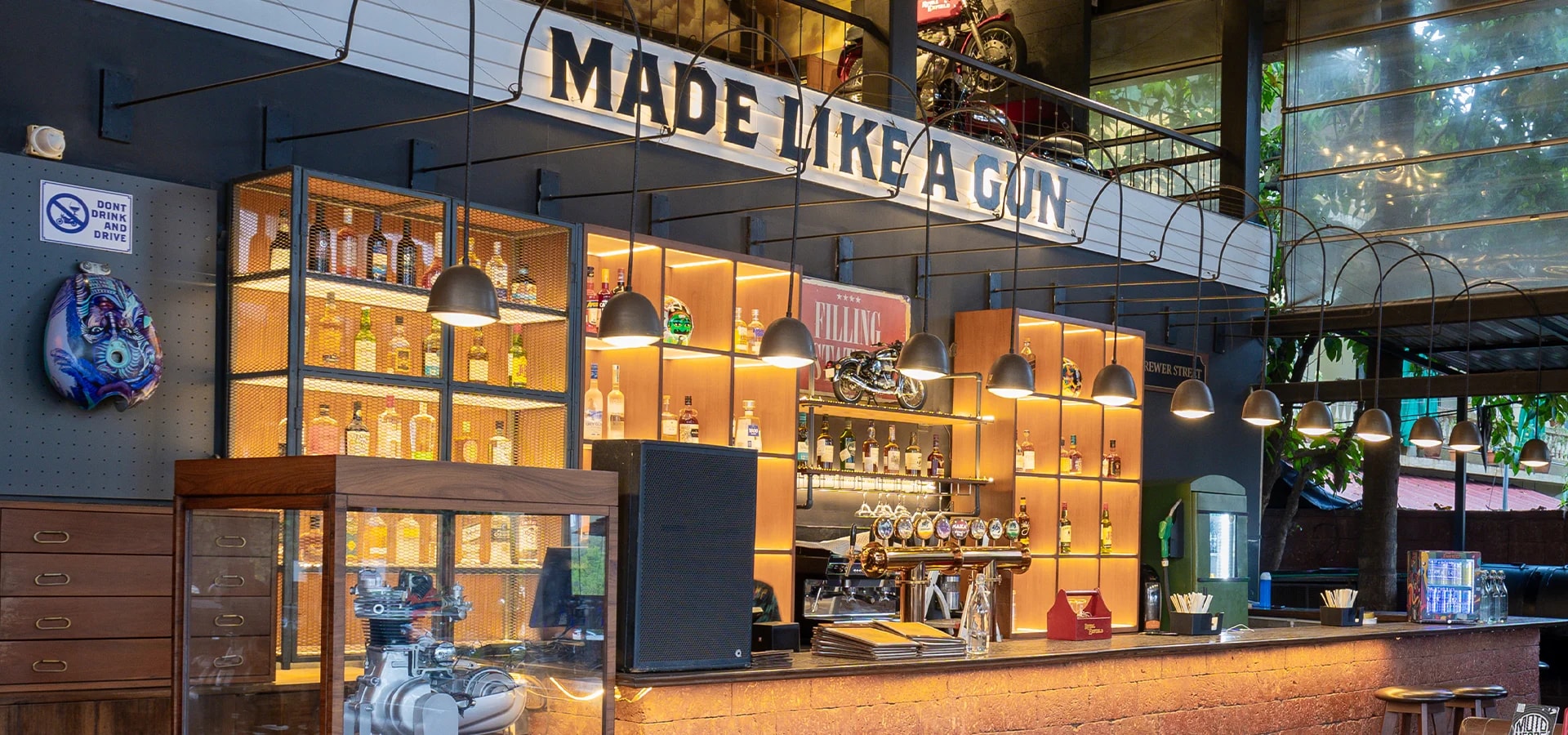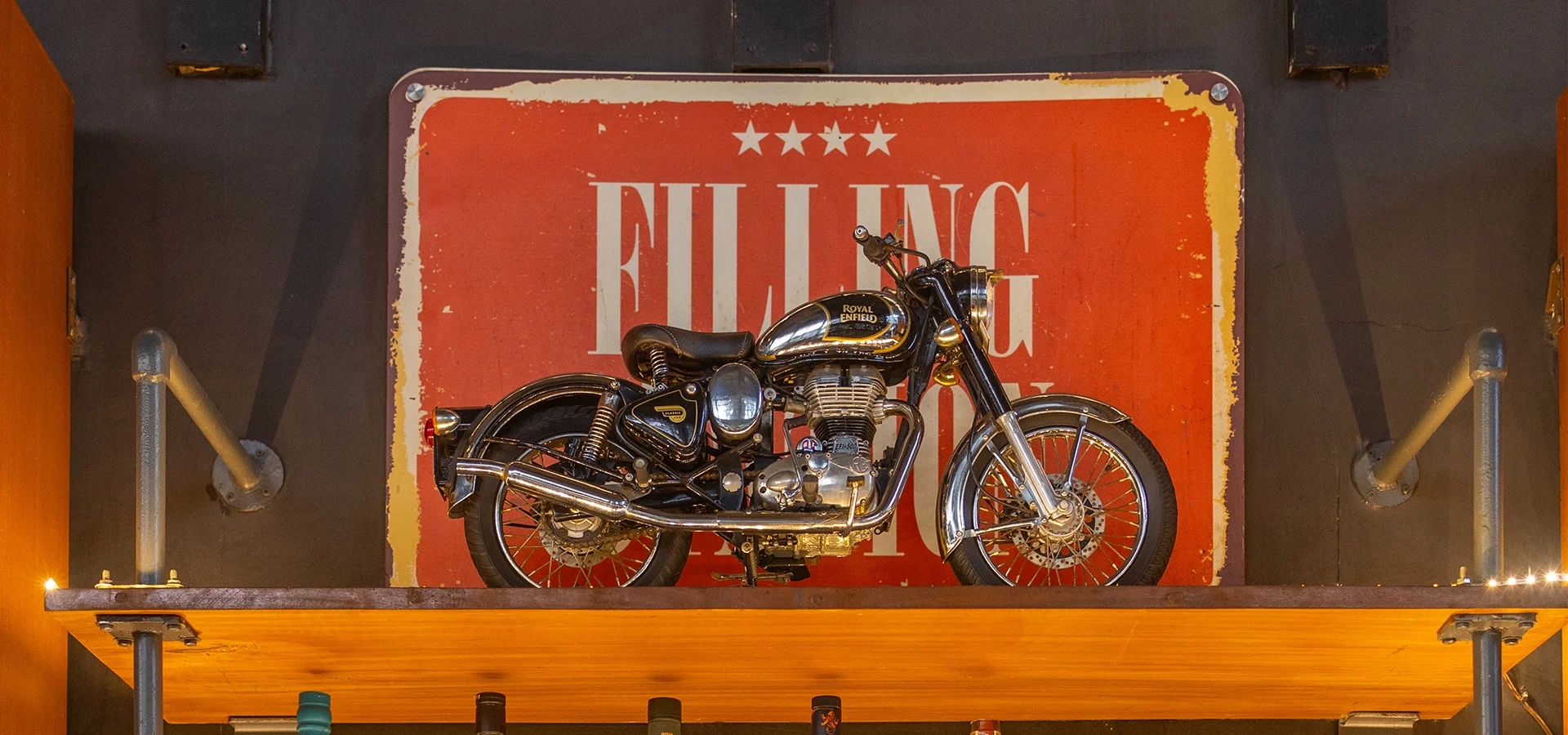 Garage Café, Goa is motorcycling inspired café and bar by Royal Enfield. It is home to Royal Enfield’s vintage motorcycles, art by motorcyclists, signature dishes curated by speciality chefs. Here you find 120 years of motorcycling legacy seamlessly integrating with Goan heritage.