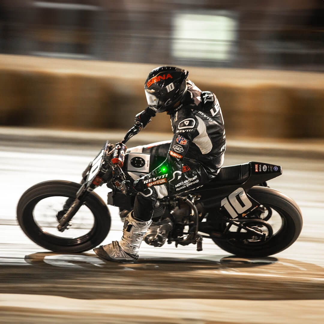 Moto Anatomy Powered by Royal Enfield is Royal Enfield’s factory flat track race team competing in American Flat Track’s Production Twins. Founded in 2020, Royal Enfield partnered with veteran rider Johnny Lewis’s Moto-Anatomy race team to field Royal Enfield’s Twins FT in AFT’s Production Twins class. Royal Enfield’s Twins FT was developed by Harris Performance (A Unit of Eicher Motors Ltd) with direct feedback from Lewis. Since Moto Anatomy x Royal Enfield’s inaugural season, Lewis has amassed several top-five place finishes and two historic victories for Royal Enfield. For the 2023 season, Johnny Lewis took on a new challenge for Royal Enfield, the Super-Twins class of American Flat Track. Throughout the 2023 season, Johnny Lewis pushed his Royal Enfield beyond its limits at every turn, earning a top-five placement and even taking the fastest lap from other top contenders at a race this season.